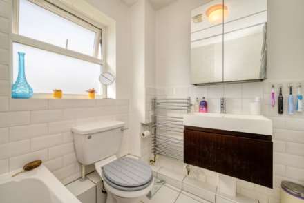 Bathroom: double glazed rear aspect. A panel enclosed bath with shower over, low level WC and a vanity wash basin and heated towel rail.